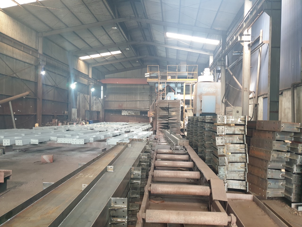 Sau quá trình gia công, hàn bề mặt cần được vệ sinh, làm sạch bề mặt. Tại đây, các cấu kiện trong nhà thép tiền chế cần được vệ sinh đánh gỉ bề mặt, xử lí bằng máy phun bi